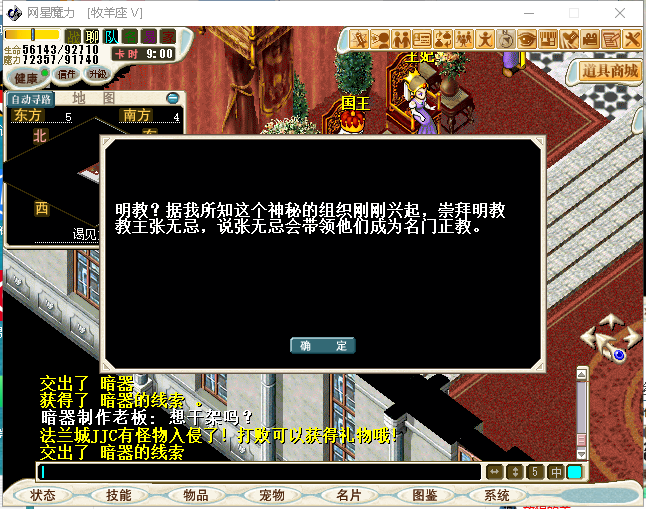 7、战斗胜利,与其对话,获得“明教的线索”,并传送回法兰城。