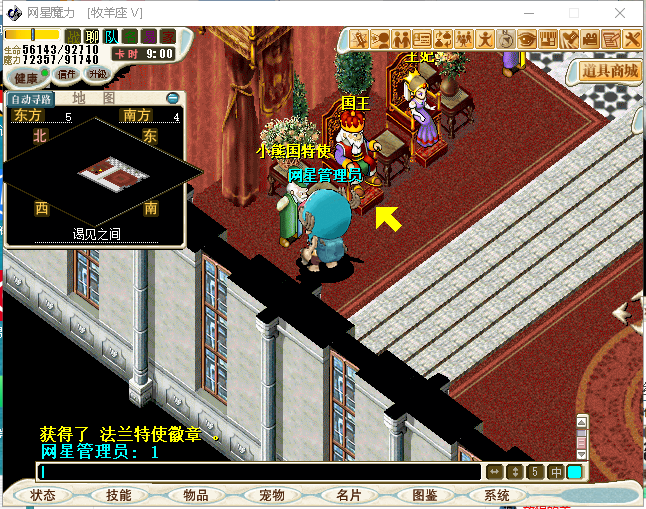8、回法兰城里谢里雅堡3楼谒见之间,找小熊国特使(5.4)对话,获得“法兰特使徽章”。(拥有该道具,即可前往任务新地图。)