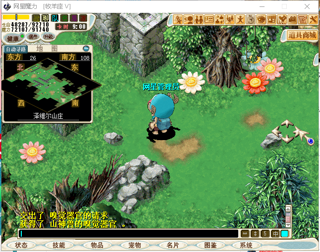 49、战斗胜利后,获得“山神兽的嗅觉器官”后传回山庄。