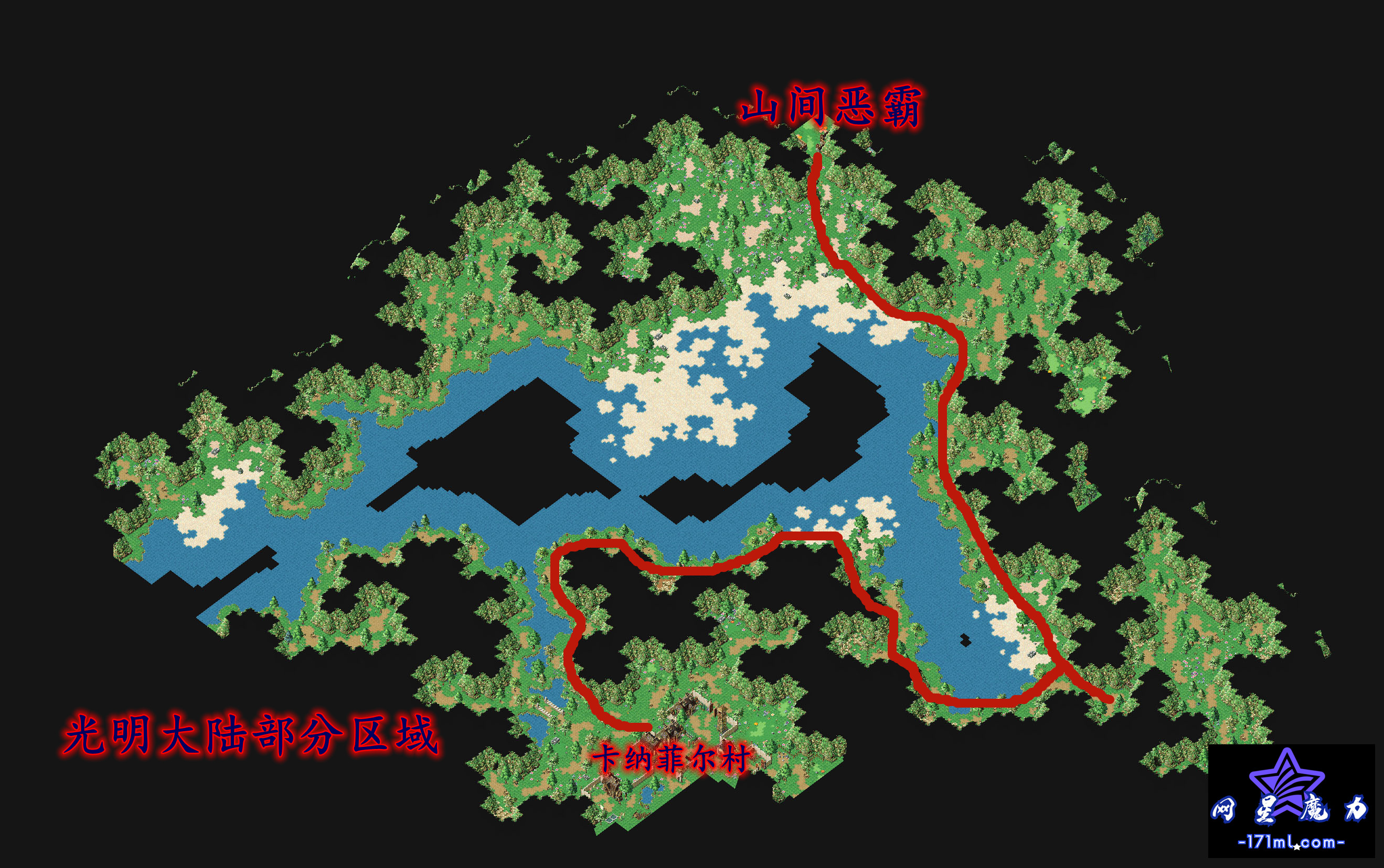 38、出城→菲席卡思洞窟→忒密立苏洞窟→凯希摩斯洞窟→卡纳菲尔村域→过桥沿东北方向的路走→山间恶霸(294 292)。